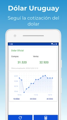 Seuraa Uruguayn peson ja Yhdysvaltain dollarin virallista vaihtokurssia vaivattomasti. Tämä sovellus tarjoaa sinulle aina ajantasaisen tiedon virallisen dollarin arvosta Uruguayn pesoissa, suoraan puhelimeesi. Ei enää epävarmuutta tai arveluita – tiedät tasan tarkkaan, mikä on tämän hetkinen tilanne valuuttamarkkinoilla ja voit tehdä päätöksiä luottavaisin mielin.